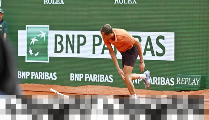 - Medvedev frustrasi dan menunjukkan emosi dengan tindakan membanting raket.